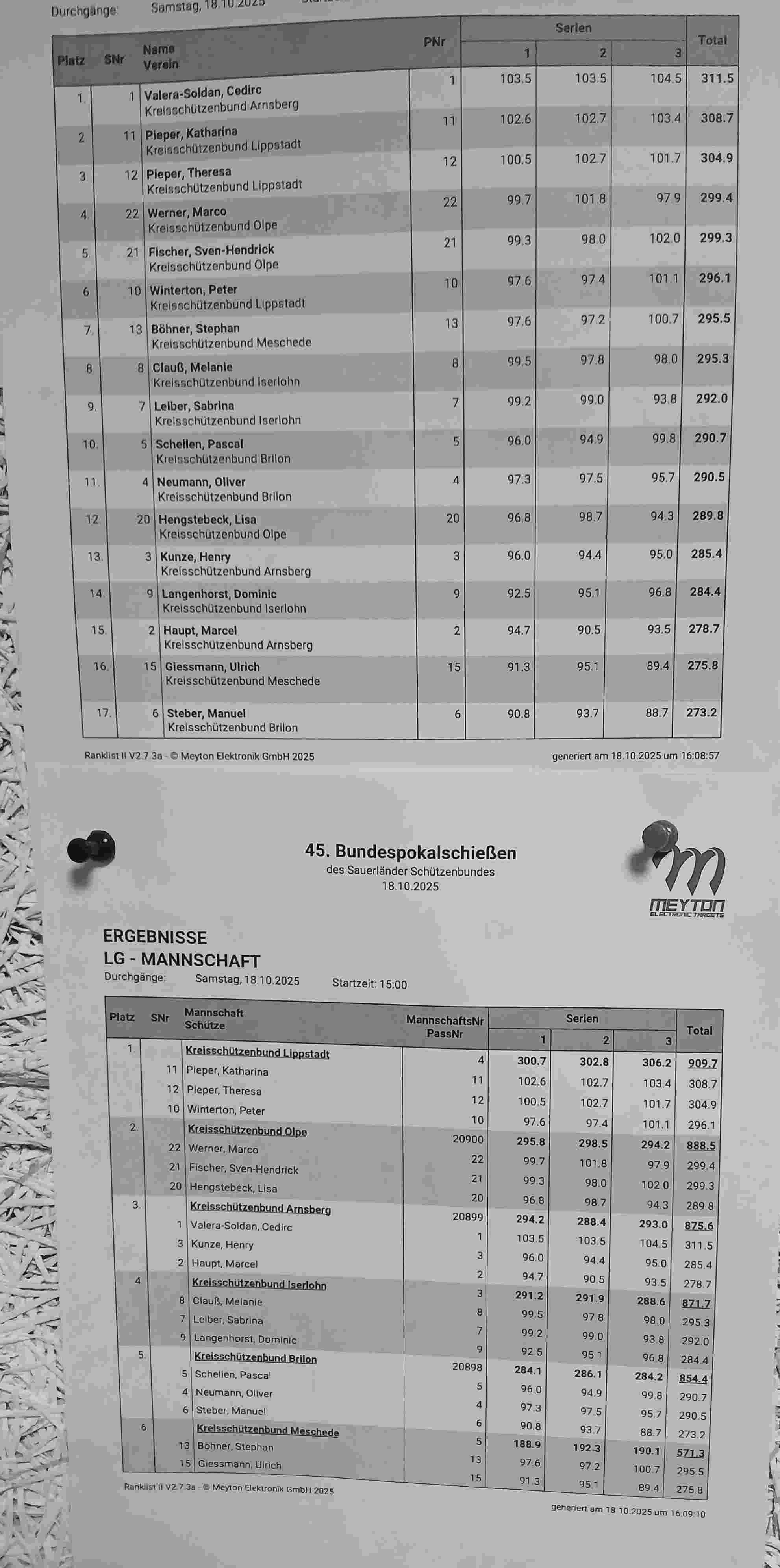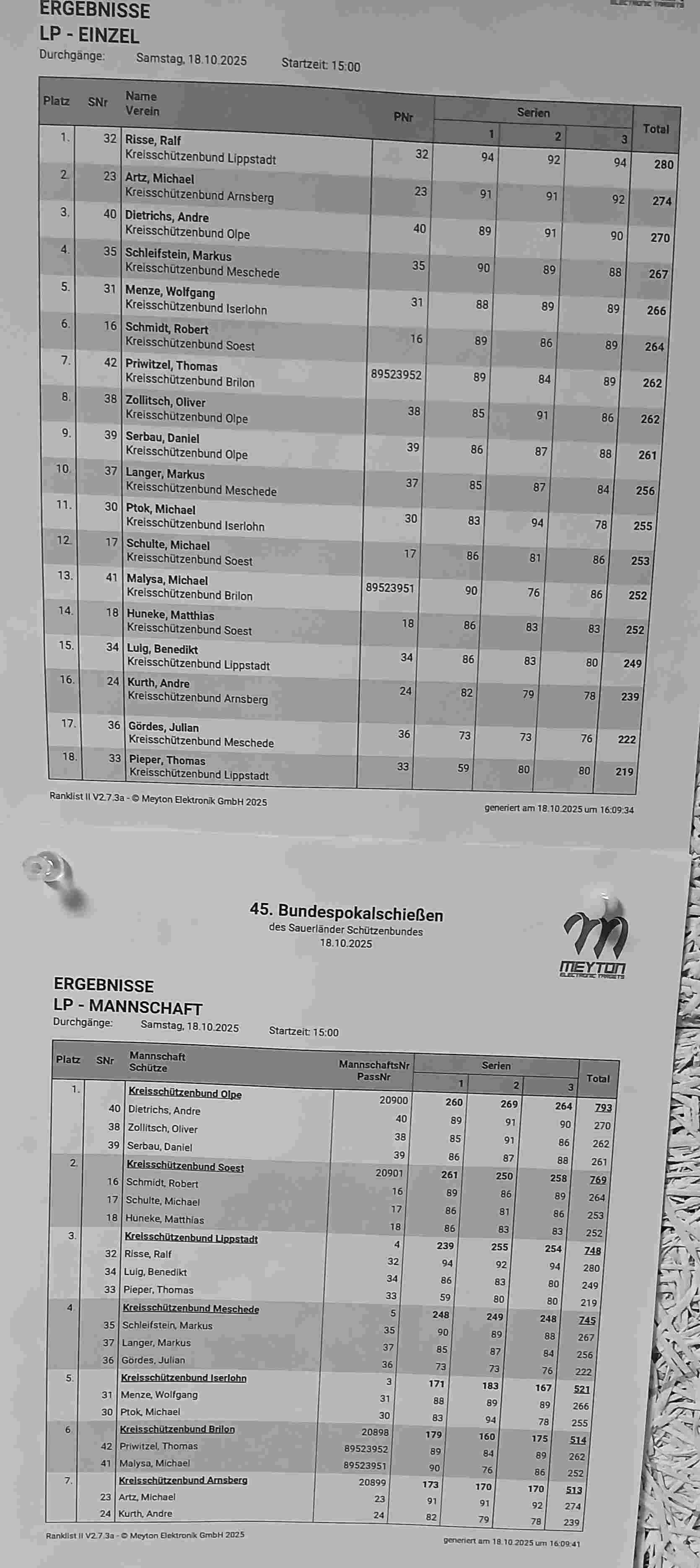 Hier die Ergebnisse Luftgewehr und Luftpistole